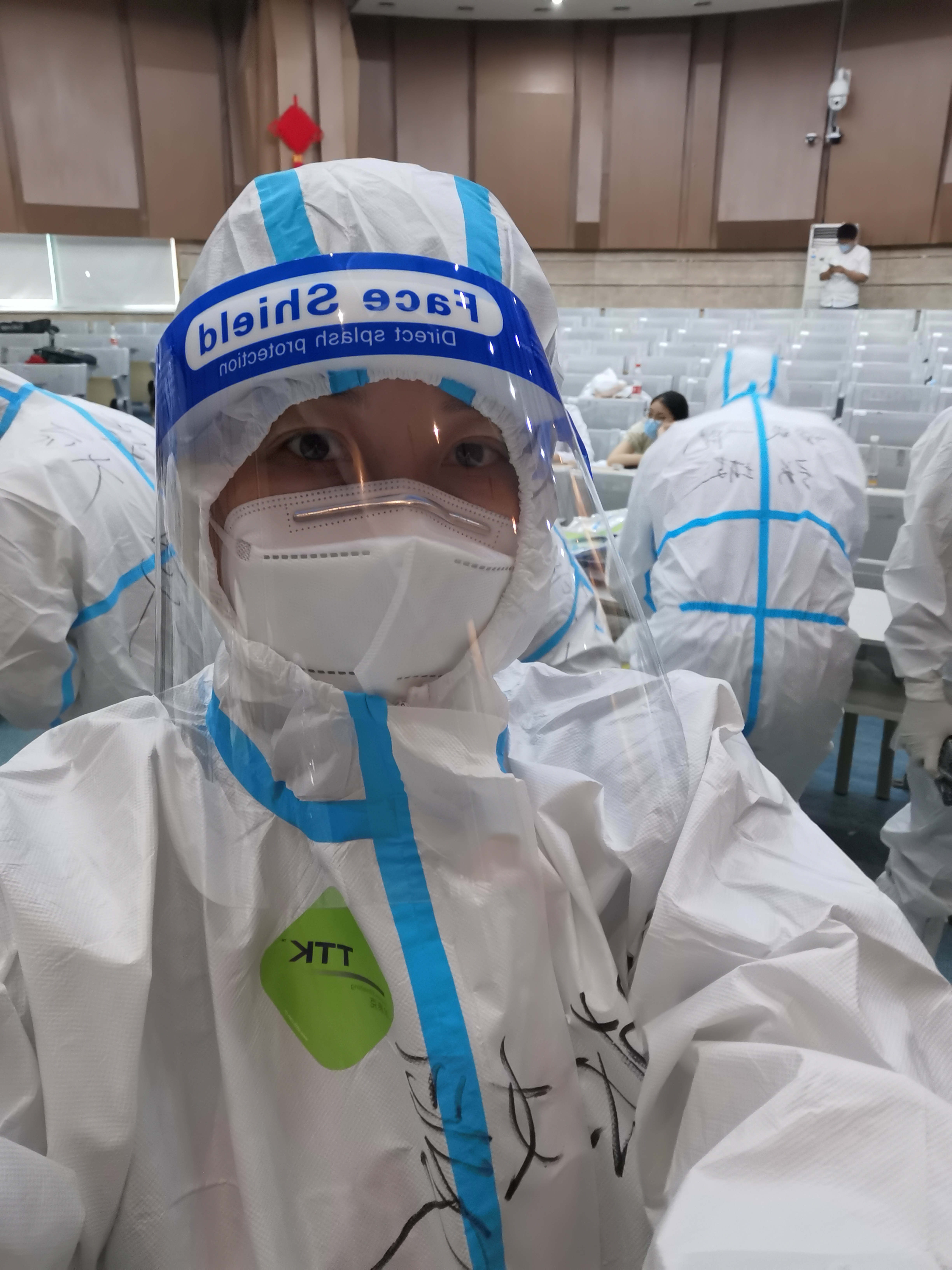 陳媛,黨支部副書記,疫情爆發(fā)以來,多次助力醫(yī)護(hù)人員參與核酸檢測。為節(jié)省一套防護(hù)服,連著兩個班次不換崗,不肯下來休息,每檢測一人,除做好系統(tǒng)登記、核對人員,還要提醒來檢人員配合動作,以保障標(biāo)本采集的精準(zhǔn)和有效。